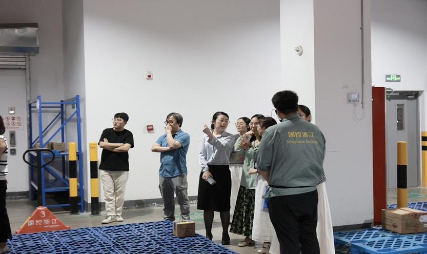 理论联系实际方能固本培元。会后,丁静一行实地考察了国药控股浙江有限公司现代化物流中心,师生近距离观摩了药品的智能化储存、高效分拣及精准运输全流程。物流中心的高效运作与严谨管理,为联合培养研究生提供了鲜活的产业课堂,使其对医药供应链的实战场景有了沉浸式认知。