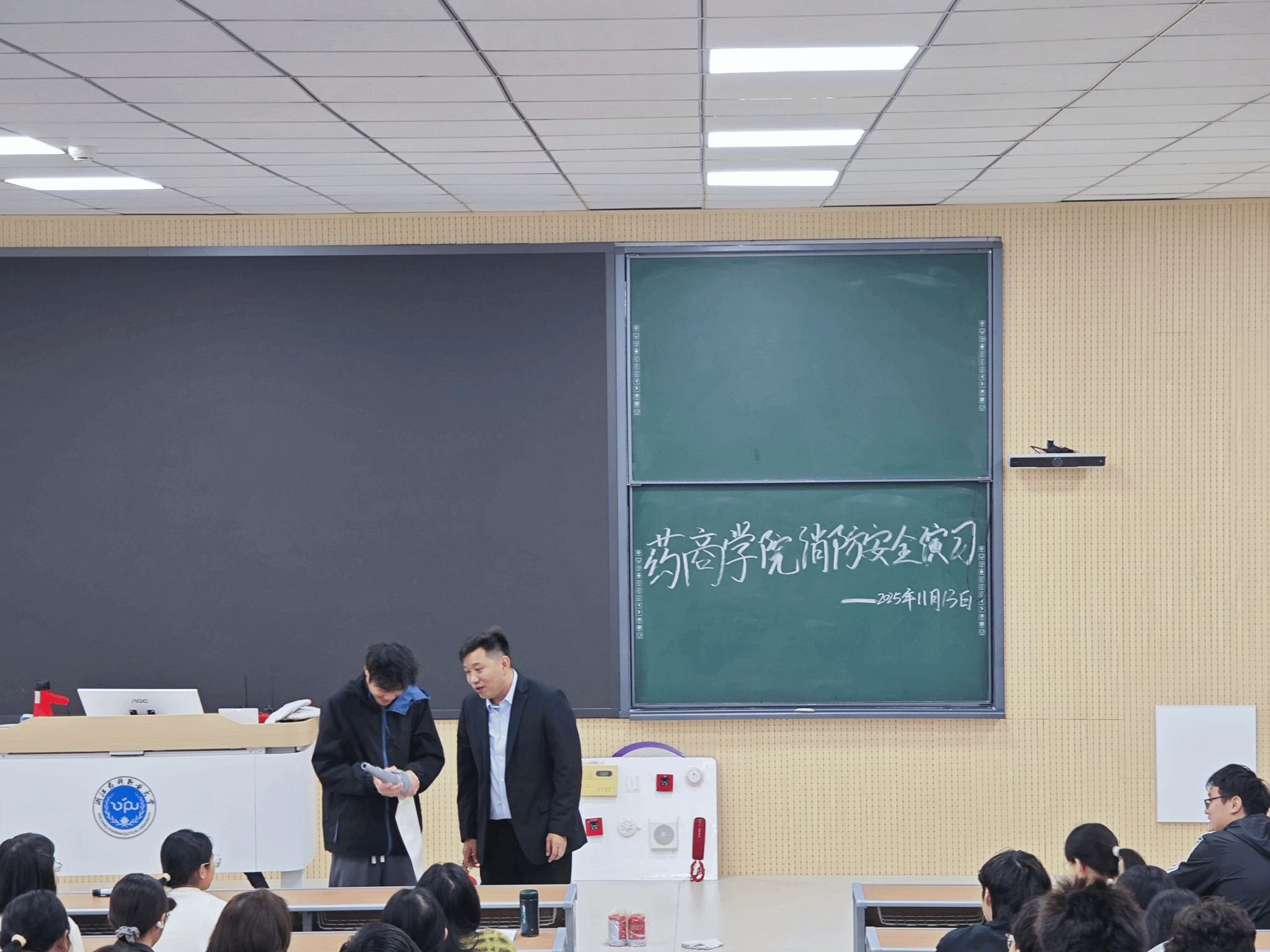 为进一步强化校园消防安全工作,提升师生的消防安全意识与应急处置能力,在校保卫处大力支持下,药商学院、医药数字化技术学院11月13日中午组织开展了消防安全综合演练活动。此次活动严格遵循“5A等级平安校园”建设的核心要求,旨在全方位提高广大师生的消防安全意识和应急处置能力。此次演练包含火灾报警、紧急疏散、灭火器使用以及伤员救护等环节,全体师生积极协作,操作符合规范,演练进程有条不紊。活动分为三个板块,分别为消防基本知识讲解、教室逃生疏散演练以及灭火实操演练。