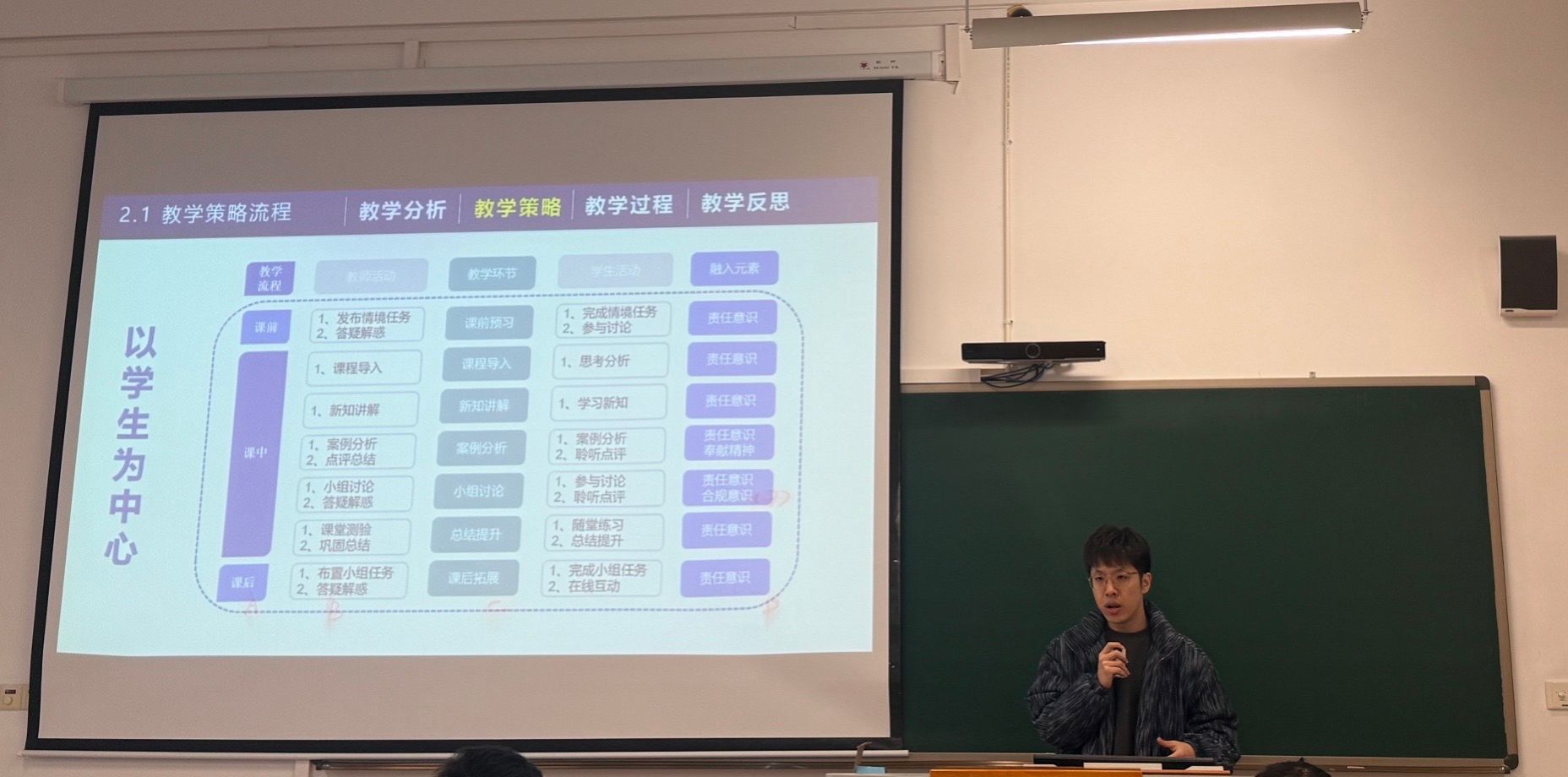 最后,院长周宇升作总结讲话。他强调,学院管理者、教学督导和指导教师要持续优化制度环境,完善支持体系与评价机制,为青年教师营造更加包容、支持、富有滋养的成长生态。同时,他勉励青年教师珍惜并热爱教学这一“舞台”——既要当好精心设计的“导演”和“编剧”,更要成为富有感染力、能点燃学生求知热情的“表演者”,在教学相长中实现个人价值与育人使命的深度融合。