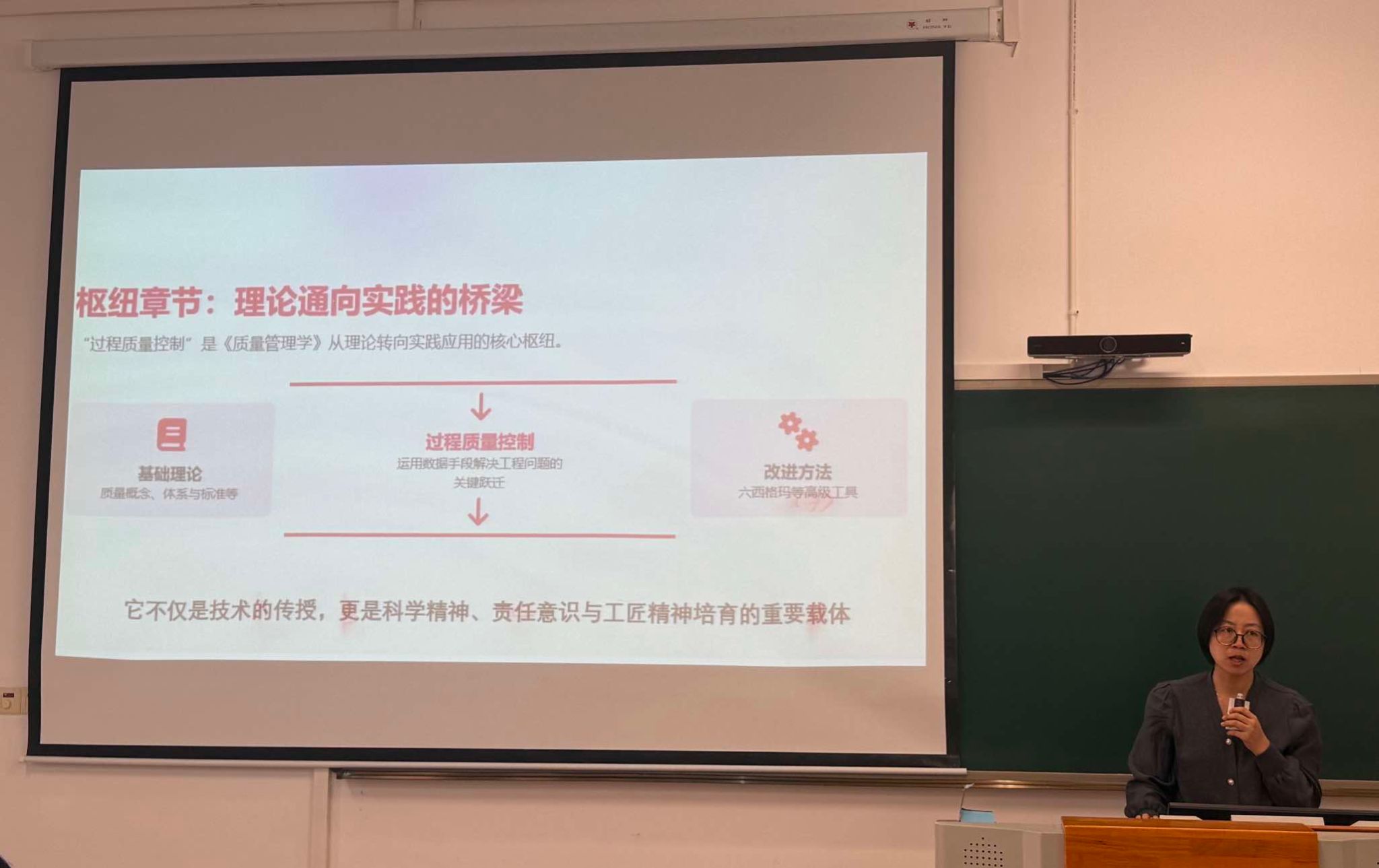 本次考核严格依照《浙江药科职业大学青年教师助讲培养实施办法》的相关要求,采用“现场说课+成果汇报+综合评价”相结合的方式进行。在说课环节,黄栗、应梵两位青年助讲教师依次登台,分别围绕《质量管理学》与《药事管理与法规》中的核心教学单元,进行了15分钟的PPT说课展示。他们立足课程特点与学生实际,系统阐述了教学目标设定、重难点分析、教学方法选择、教学情境创设及教学过程组织等环节,逻辑清晰、内容充实,充分展现了过去一年在教学理念、设计能力和课堂实践方面的显著进步。